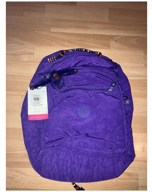 The Kipling Purple Rucksack is a stylish and practical backpack designed for women. With a solid purple exterior. This medium-sized backpack features a zip closure and a fun Tony Monkey charm. Made from durable nylon material, this casual backpack is perfect for everyday use. The Kipling brand is known for its quality and unique designs, making this backpack a fashionable and functional accessory for any outfit.