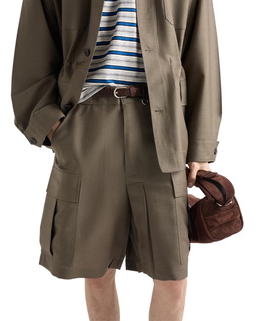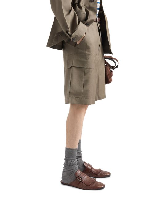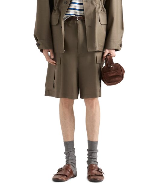 Zipper fly with concealed hook Angled front slash pockets Back welt pockets with button Fabric triangle logo on the back 60% Mohair, 40% Fleece Wool Imported. Lsd Rtw - Prada Rtw > Prada > Saks Fifth Avenue. Prada. Color: Green. Size: Medium.