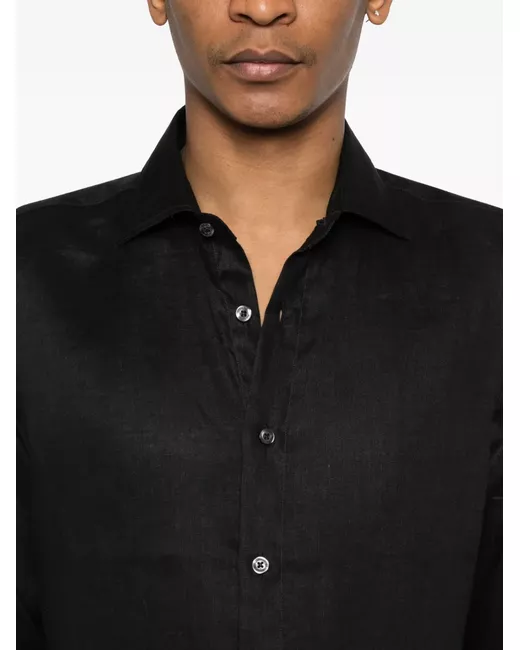 black linen long sleeves button fastening