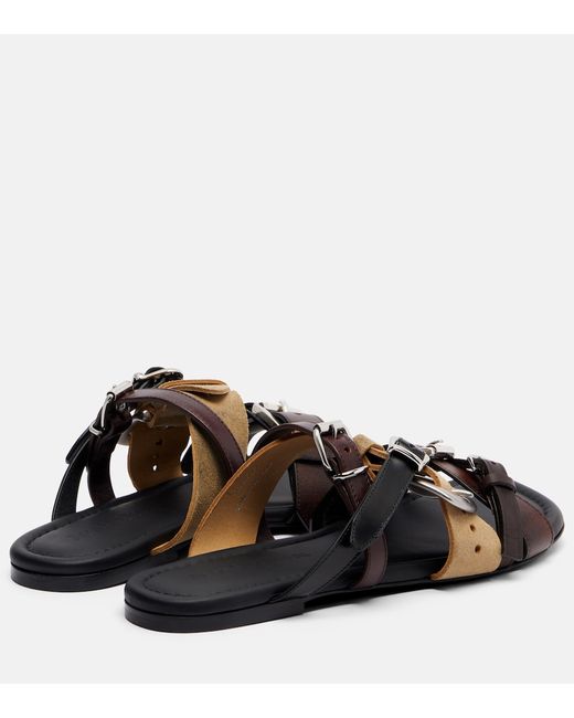 Upper: leather. Lining: leather. Sole: leather insole and sole. Toe shape: square open toe. Made in Italy. Includes: shoe box, dust bag. Designer color name: Multi brown. Hardware color: silver. Closure: buckle fastening.