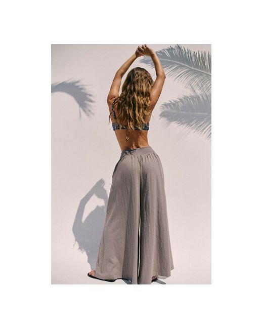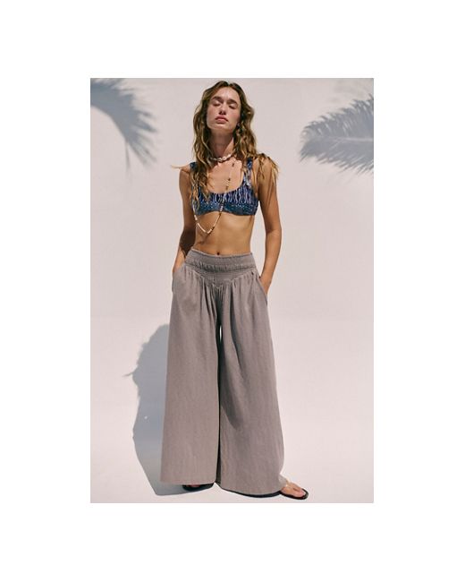 Effortlessly breezy and oh-so staple, these ultra wide-leg pants from free-est are featured in a billowy cotton fabrication with a smocked pointed waistline for the perfect flattering finish. * Pull-on style * Mid-rise * Side pockets Robin Pants by free-est at Free People in Satellite Sky, Size: XS