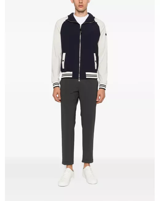 blue zip fastening hooded side pockets striped hem striped cuffs