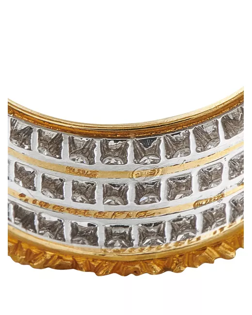 18k yellow gold textured finish diamonds 1.65 ct total diamond weight Normal everyday use and external agents may reduce the lustre of gemstones and gold surfaces. To maintain, use specific, non-abrasive products specially meant for cleaning jewellery. Your purchase will arrive with a gift box. Condition: EXCELLENT. This previously owned item is in near-perfect condition with no signs of damage or use.