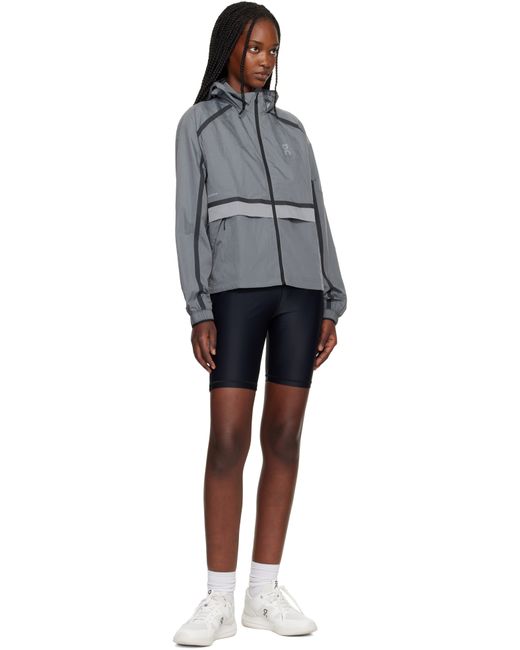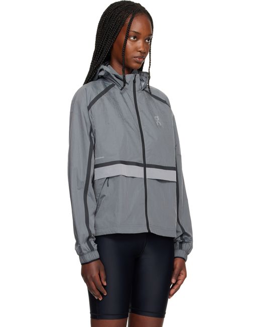 Recycled nylon-blend taffeta running jacket. · Water-repellent, windproof, and lightweight · Taped seams throughout · Stowaway hood at stand collar · Zip closure · Logo bonded at chest · Zip pockets at front · Raglan sleeves · Elasticized cuffs · Storm flap at back Supplier color: Glacier
