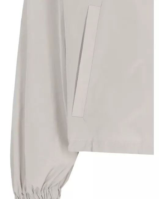 light grey zip fastening funnel neck side welt pockets long sleeves elasticated hem