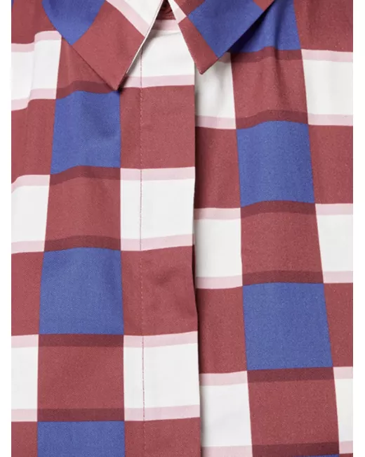 red/ blue/ white checked pattern collar button fastening sleeveless