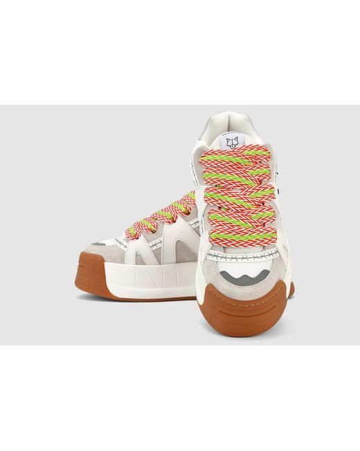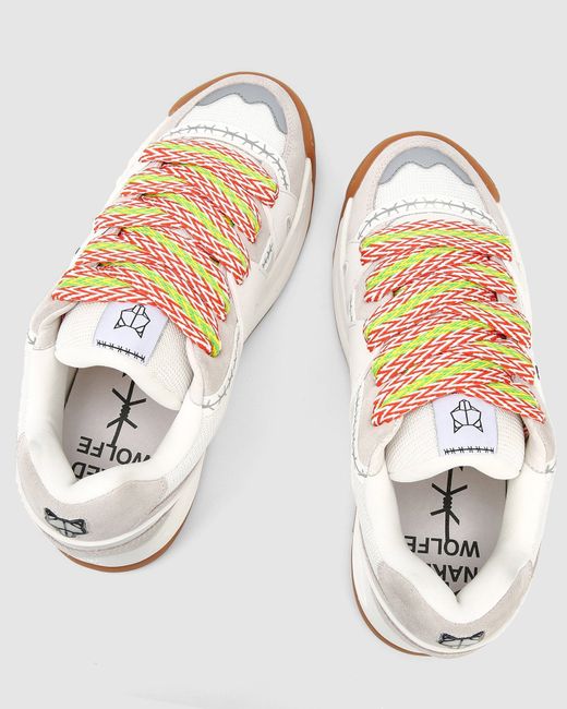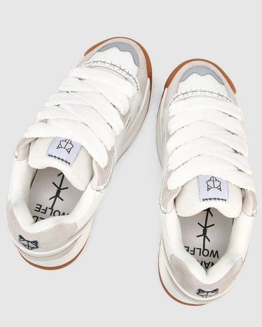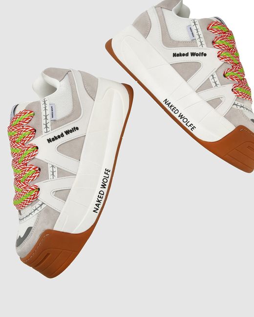 Product Description The skate sneaker makes a return, bigger and better than ever. Slide is the remix of icon style Skate. Made from a mix of leather, suede and mesh upper featuring barbed wire tape, moulded 3D rubber side panel moulds. Skater features a 3D bubble "Wolfe Head" Plaque on the heel. Slide has two pairs of extra thick 90's inspired custom designed shoe laces. Features Leather/Suede and Mesh Upper 100% Leather Insole Sock 5cm One of a Kind Platform Skate Outsole Two pairs of laces, self-matching and colour contrast