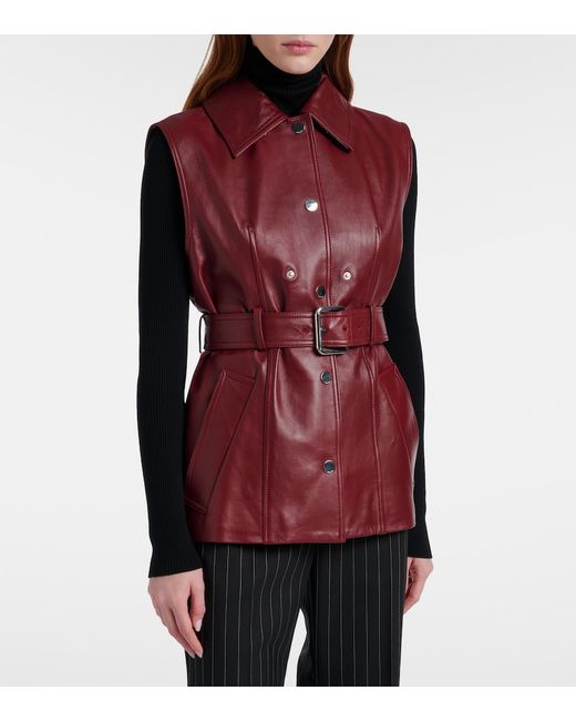 Material: 100% lamb leather. Care instructions: specialist clean. Made in India. Designer color name: Bordeaux. Lining: 100% polyester. Leather. Detachable belt. Belt loops. Cuff: zipped. Pockets: welt pockets. Closure: snap-buttoned front.