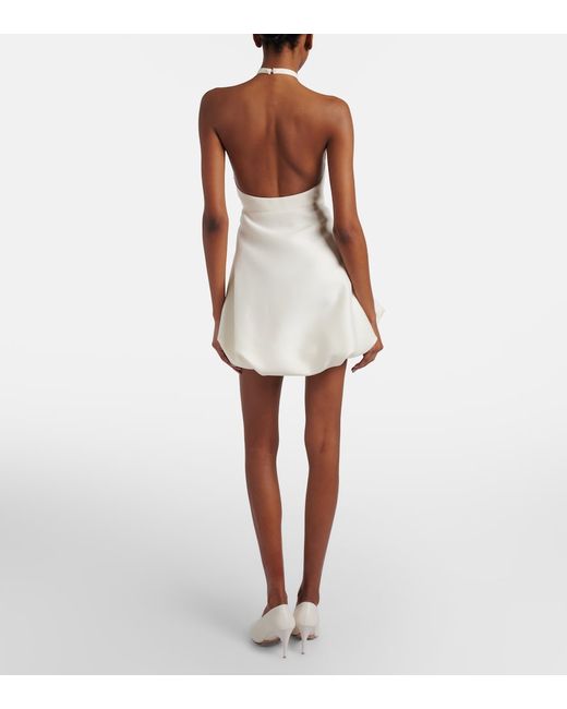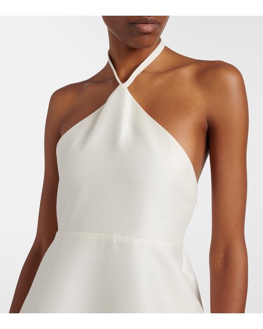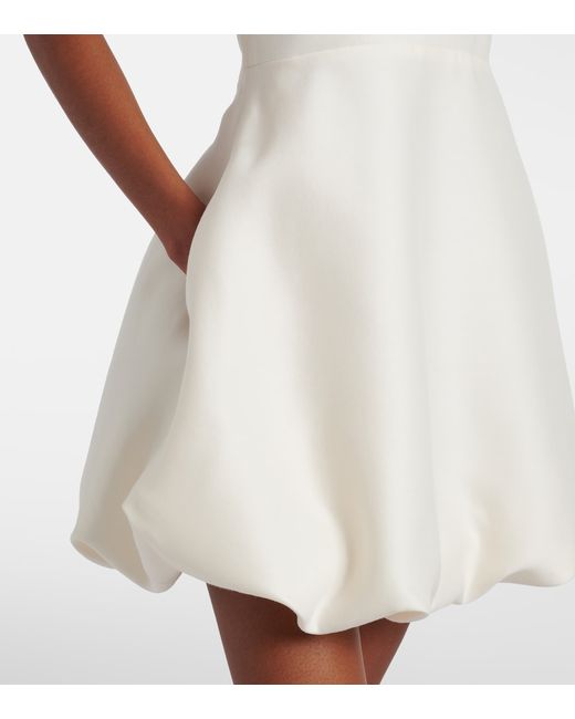 Materiale: 80% lana, 20% seta. Trattamento: lavaggio a secco. Made in Italy. Colore del designer: Ivory. Spalline rimovibili. Chiusura: zip laterale nascosta. Lana. Fodera: 100% cupro.