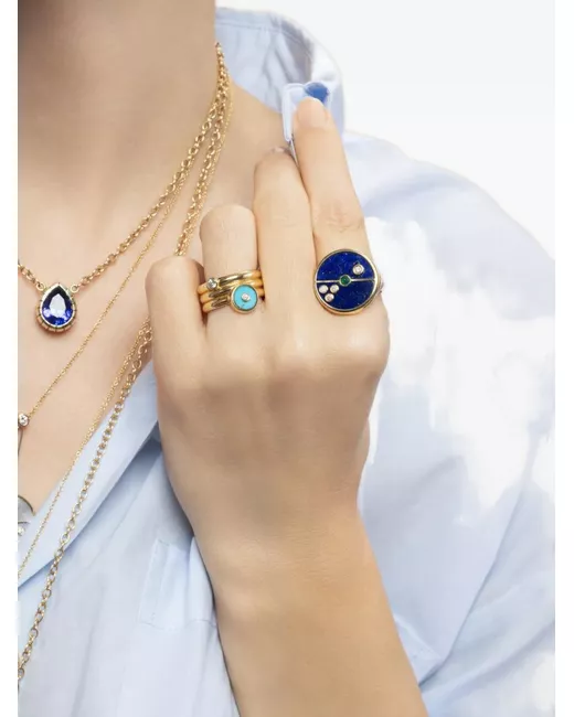 14K yellow gold bezel-set round-cut emerald totalling 0.12 carats bezel-set round-cut diamonds totalling 0.09tcw lapis lazuli compass design round face Normal everyday use and external agents may reduce the lustre of gemstones and gold surfaces. To maintain, use specific, non-abrasive products specially meant for cleaning jewellery.