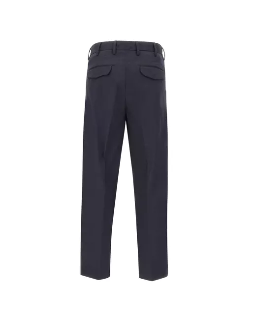 dark blue front pleats belt loops flap back pockets button closure rounded front pockets