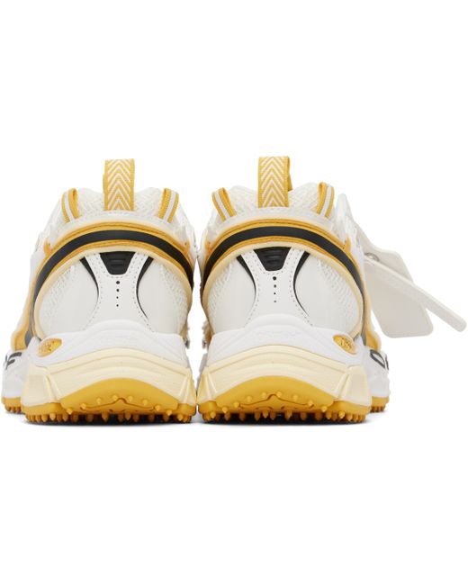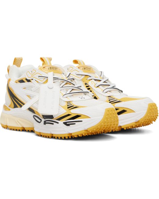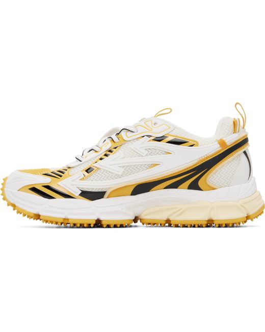 Low-top mesh and buffed faux-leather sneakers. · Logo printed at vamp · Signature zip-tie at lace-up closure · Logo patch and pull-loop at tongue · Padded tongue and collar · Signature arrow appliqués at sides · Pull-loop at heel collar · Mesh lining · Treaded rubber sole Supplier color: White/Yellow