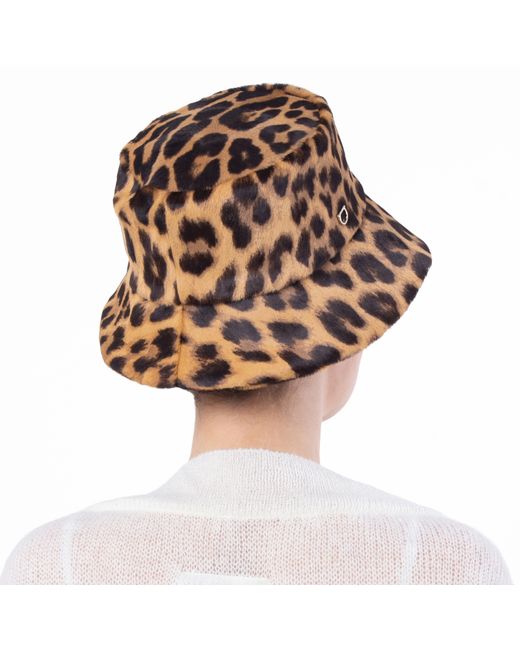 Ferragamo Ladies Hats. Fashion category: Hats. SKU: 360749 767503. Color: Tural/Black. Ferragamo Leopard Print Bucket Hat. Ferragamo leopard-print bucket hat crafted from pony hair and brown calf leather. Features an all-over animalier print, a Gancini plaque, a round crown, and a dropped narrow brim for a chic, statement-making look. 100% Calfskin Leather. Made in Italy.