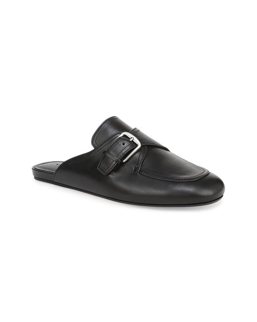 These Minetta mules from Vince are crafted of leather and feature a self-strap across the vamp that secures with a squared metal buckle. Apron toe Slips on Leather upper Leather lining Leather sole Imported. Women's Shoes - Contemporary W Shoes > Vince > Saks Fifth Avenue. Vince. Color: Black. Size: 7.
