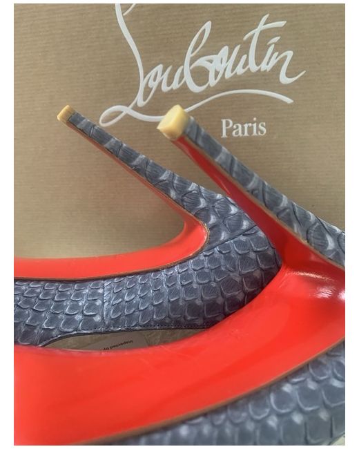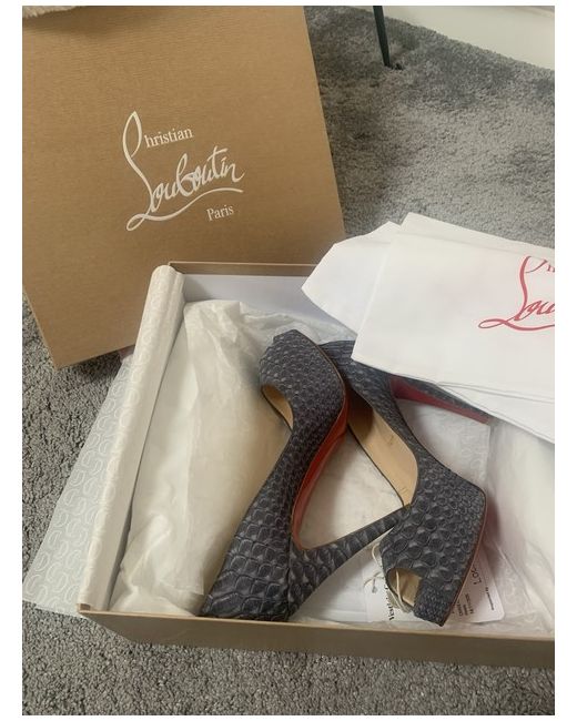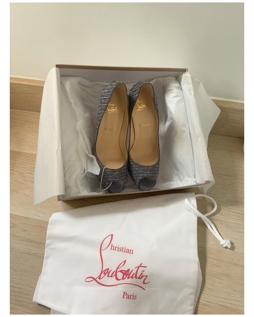These genuine Christian Louboutin Grey Python Heels in exotic leather are new and unworn , size 39.5 or a Uk size 6.5 In an authentic louboutin box with dust bags included 12 cm heel with concealed small platform and signature red soles