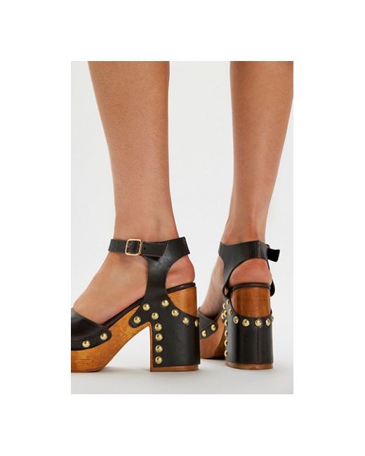 Studded details take the reins in these adorable clogs from FP Collection, featuring sturdy leather uppers, a pine wood platform design, and an ankle strap for added support for this eye-catching pair. * Smooth leather uppers * Slip-on clog style * Ankle strap with buckle closure * Lined footbed * Dome stud accents * Pine wood platform sole * Chunky block heel * Rubber outsole * **Platform Height:** 1.57 in, **Heel Height:** 4.33 in Cecelia Studded Clogs by Free People in Chocolate, Size: US 6