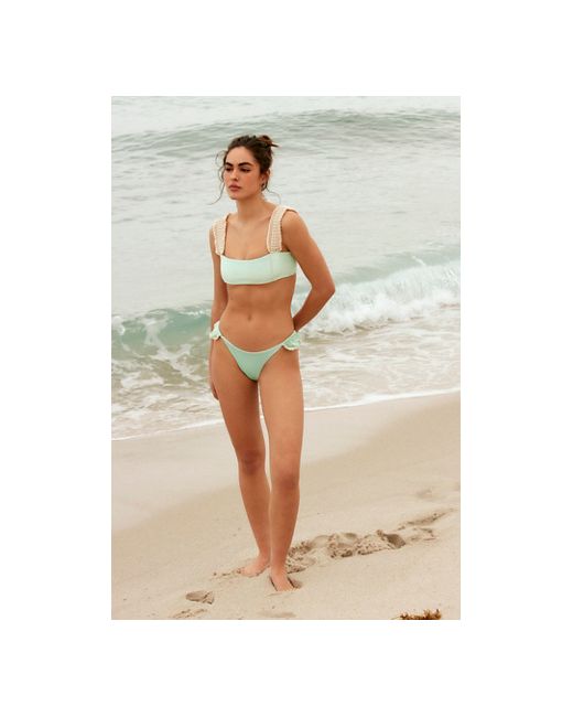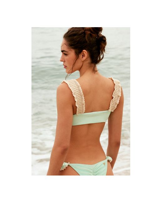 Handmade by Peruvian artisans, this stunning bikini top from Capittana is featured in a velvety fabrication and bandeau-inspired fit with thick crochet straps for the perfect bold finish. * Square neckline * Pull-on style * Velvety fabrication Capittana Almudena Velvet Bikini Top at Free People in Verde Aqua, Size: Small
