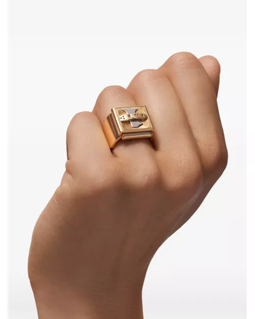 18K yellow gold/18K white gold polished finish raised embellishment rectangular face engraved detailing Normal everyday use and external agents may reduce the lustre of gemstones and gold surfaces. To maintain, use specific, non-abrasive products specially meant for cleaning jewellery.