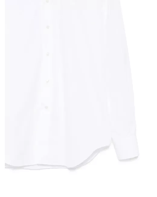 white spread collar front button fastening long sleeves buttoned cuffs curved hem