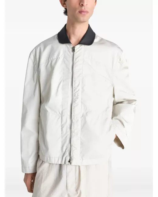 bianco colletto in pelle inserti chiusura con zip cotone