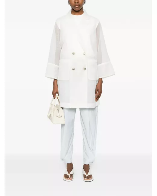 white double-breasted button fastening patch pocket structured shoulders cuffed sleeves textured
