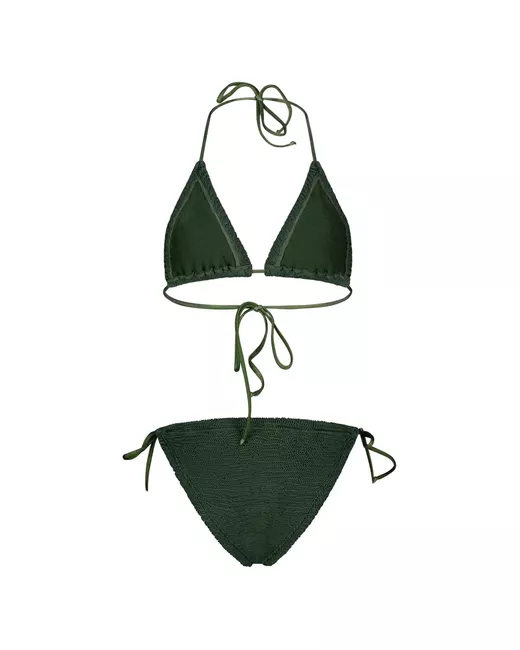 forest green triangle cup textured finish self-tie fastening Be mindful to try on swimwear over your own garments.