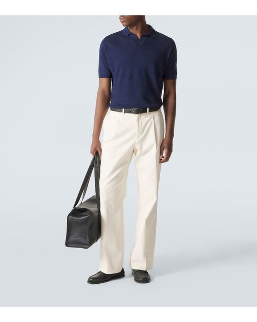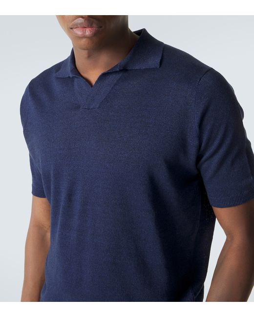 Materiale: 73% lino, 27% cotone. Trattamento: lavaggio a mano. Made in Italy. Colore del designer: Navy. Lino, Cotone. Orlo: a coste. Polsini: a coste. Collo: colletto polo.