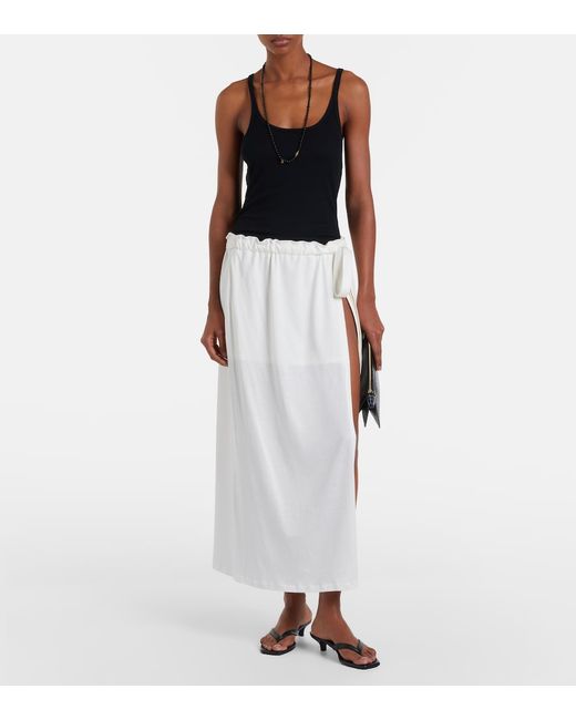 Materiale: 50% cotone (biologico), 50% seta. Trattamento: lavaggio a mano. Made in China. Colore del designer: Off-White. lacci da annodare in vita. Spacco profondo. Cotone, Seta.