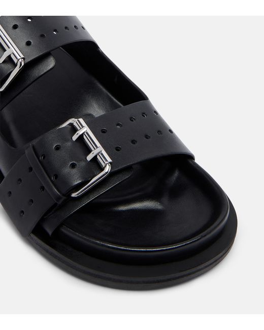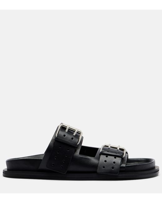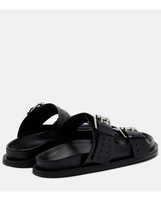 Upper: leather. Lining: leather. Sole: leather insole, rubber sole. Toe shape: round open toe. Made in India. Includes: shoe box. Designer color name: Black / Gold Hardware. Closure: buckle fastening. Hardware color: silver.
