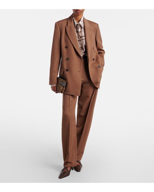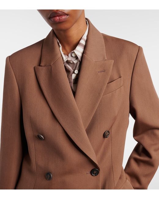 Double-breasted wool-blend blazer da Women di colore Marrone