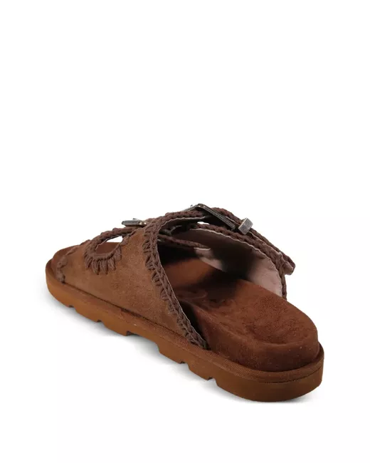 nut brown stitched trim double buckle-strap fastening moulded footbed ridged sole