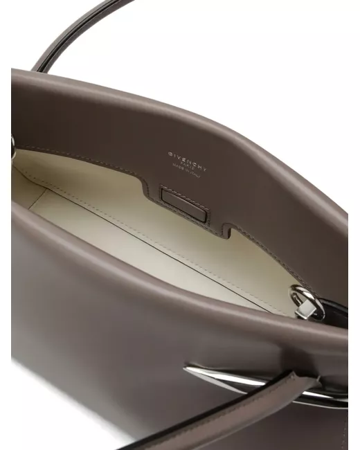 taupe brown calf leather top handles silver-tone hardware internal slip pocket This piece comes complete with a protective dust bag.