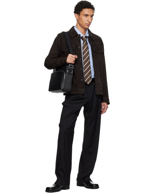 Grained leather messenger bag. · Adjustable webbing crossbody strap · Embossed logo and zip pocket at face · Luggage strap at back face · Two-way zip closure · Padded laptop compartment · Patch pockets and zip pocket at interior · Logo-engraved silver-tone hardware · H10.25 x W13.5 x D3.75 Supplier color: Black