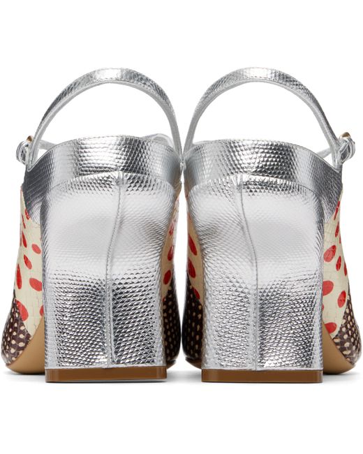 Snake-embossed leather heels. · Graphic patterns printed throughout · Pin-buckle ankle strap · Block heel with rubber injection · Leather sole · Heel: H3 Supplier color: Natural