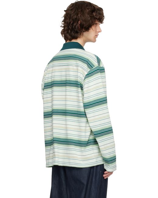 Cotton jersey polo. · Stripes throughout · Spread collar · Three-button placket · Logo flag at hem · Concealed drawstring at side seam · Dropped shoulders Supplier color: Green