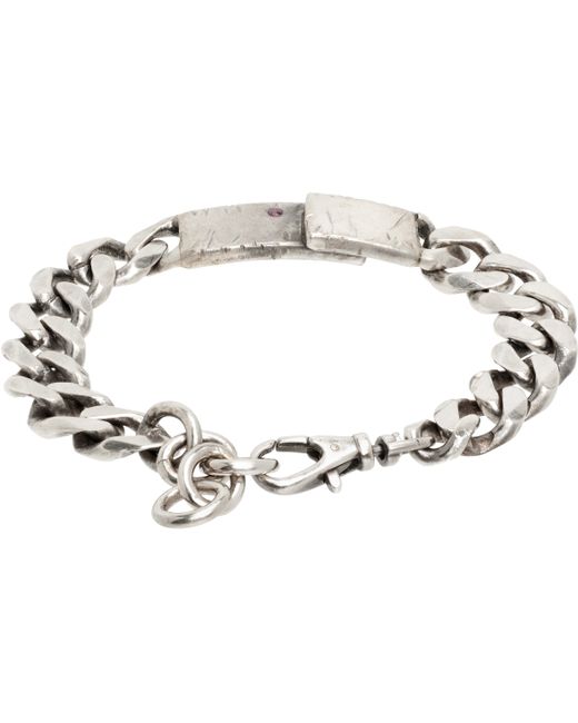 Curb chain bracelet in antiqued sterling silver. · Bezel-set ruby stone at length · Adjustable lobster-clasp fastening · L8.25 Supplier color: Silver