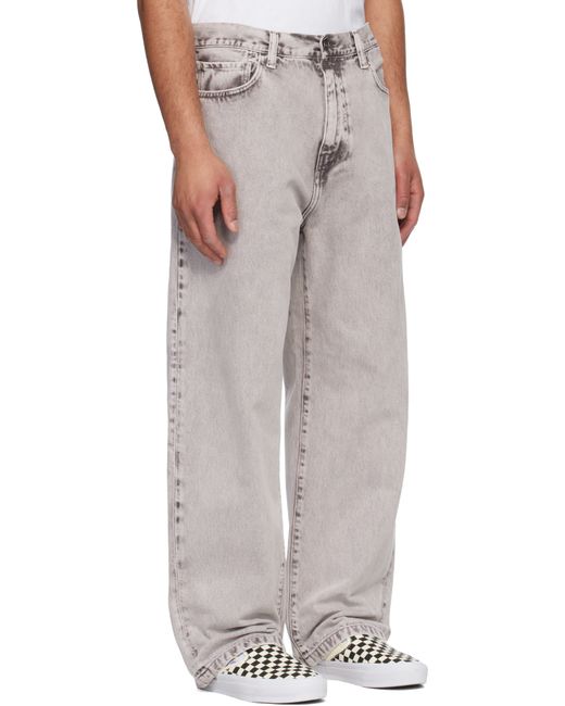 Heavyweight non-stretch denim jeans. · 13.5 oz Carhartt WIP Smithfield denim · Stone-dyed · Fading throughout · Loose-fit, tapered · Mid-rise · Belt loops · Five-pocket styling · Zip fly · Logo patch at back pocket Supplier color: Shale (Chalk Wash)