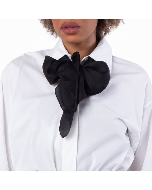 Saint Laurent Ladies Scarves. Fashion category: Scarves. SKU: 778715 3Y039 1000. Color: Black. Saint Laurent Black Silk Scarf. This Saint Laurent silk scarf embodies understated luxury and timeless elegance. Crafted from pure silk, it features a deep black hue with a subtle natural sheen that enhances its refined appeal. A discreet Saint Laurent logo detail in the corner adds a signature finishing touch without detracting from the minimalist design. Soft, fluid, and versatile, it can be styled effortlessly around the neck or layered with outerwear for a polished look. Material: 100% silk.