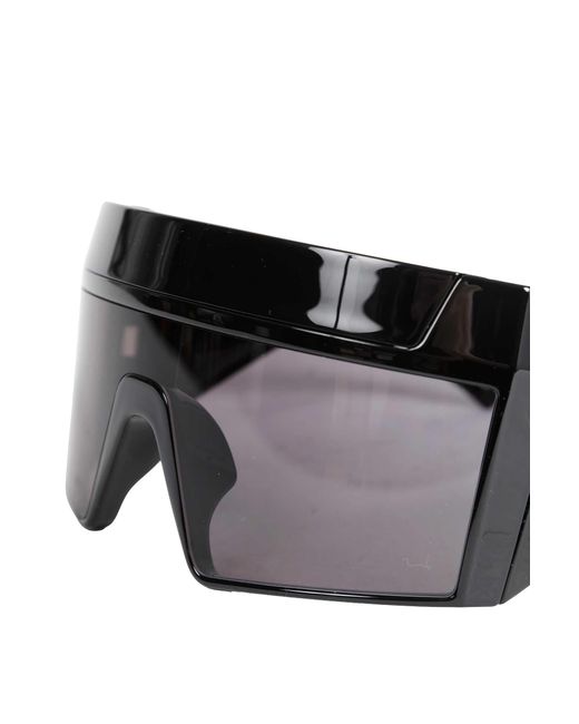 Rick Owens Rev Shiny Sunglasses. Black mask-frame visor in collaboration with Martin Rev, 100% UVA/UVB protection. Avant-garde design inspired by Suicidebandofficial s punk legacy.