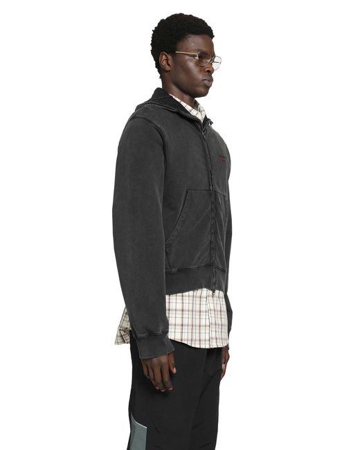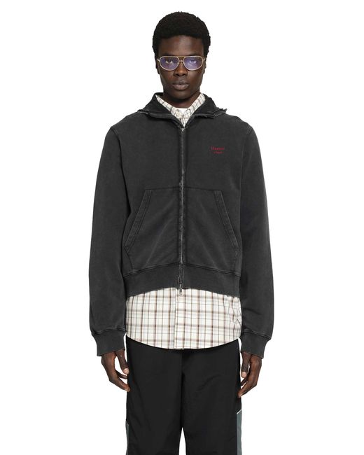Martine Rose's Hooded Zip Crew Sweatshirt channels utilitarian ease through a washed, deconstructed lens. Graphic placement and raw finishes distill the brand's playful yet considered contemporary identity.