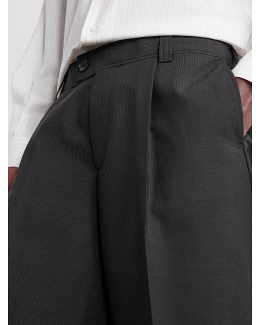 mpfen’s shorts are designed to develop character over time, gradually fraying to become a unique, personal piece. Made from wool with a subtle pinstripe pattern, they have a regular fit with roomy, pleated legs for both comfort and style.