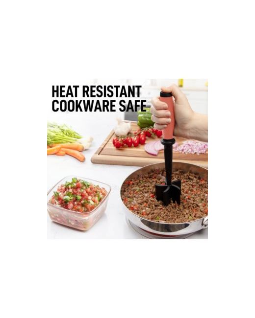 Make cooking quicker and easier with the Zulay Kitchen 2 Pack Ground Beef Masher Chopper Tool. Designed to efficiently break up hamburger meat, turkey, sausage, and plant-based proteins, this versatile kitchen tool helps ensure even cooking and perfect texture every time. The angled, multi-blade head easily crumbles meat directly in the pan, making it ideal for tacos, chili, pasta sauces, and more. Crafted from durable, food-grade nylon, this meat smasher is heat resistant up to 410°F and safe for use on non-stick and coated cookware without scratching surfaces. The ergonomic, non-slip handle provides a comfortable, secure grip for better control and reduced hand fatigue. Lightweight, sturdy, and easy to clean, this convenient 2-pack is a must-have for efficient, mess-free meal prep in any kitchen.