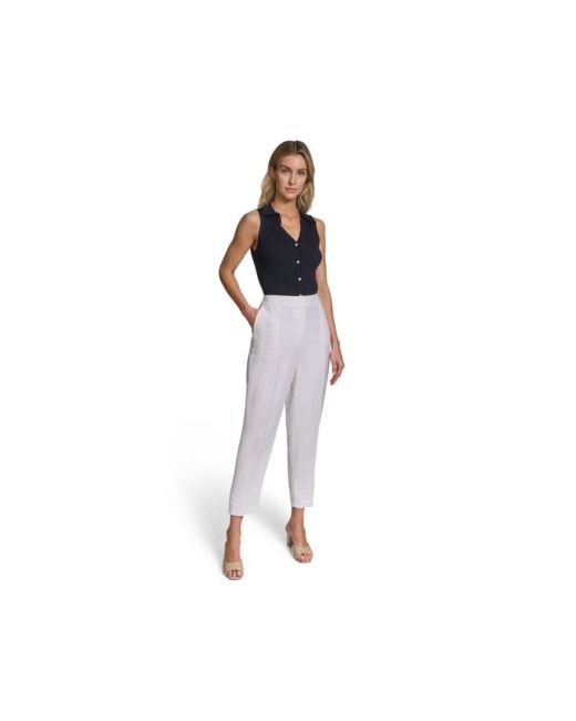 Tailored modern styling shapes these Calvin Klein slim-leg pants, featuring a mid-rise waist for balanced everyday comfort. A zipper with a hook-and-bar closure keeps the fit secure, while front and back pockets offer convenient storage.