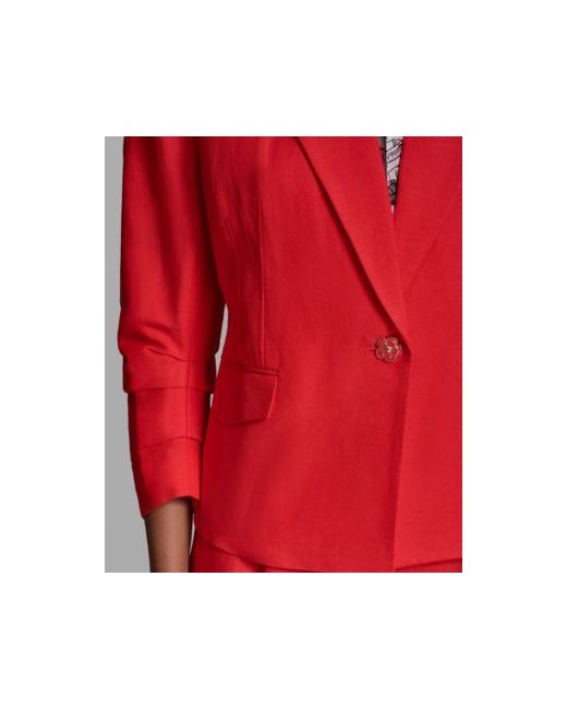 Elevate tailored dressing with this Karl Lagerfeld Paris jacket, styled with a notch lapel that sharpens the overall look. The 3/4-length-sleeve introduce a contemporary touch, while a single-button closure and hip pockets complete the structured silhouette.