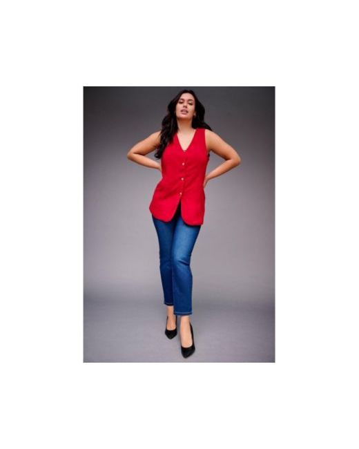 Sleek and tailored, this vest offers a modern twist on a classic silhouette. Designed with a button-front and clean lines, it creates a polished look that layers effortlessly. The relaxed fit and soft drape make it a versatile piece from work to weekend. Fabric: Soft and smooth with the perfect amount of stretch, giving you all the comfort and ease you love. Fit: V-neckline. Button front. Welt pockets. Care: Machine Wash Key Features Include: 62% Polyester, 33% Viscose, 5% ELASTANEImported. Length: 30". Plus Sizes 14-36Avenue