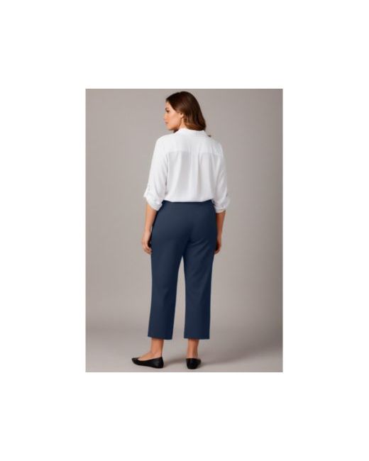 These super-stretch pull-on pants feature a smooth, easy fit with a clean straight-leg silhouette that hits at the ankle. Designed for comfort and flexibility, they offer a sleek look with faux pocket detailing and a streamlined waistband. Versatile and polished, they move effortlessly from workdays to casual wear. Fabric: Feels smooth and cool to the touch, with a soft, fluid hand. It has a sleek, resilient feel that provides structure without stiffness, along with comfortable stretch and recovery. Fit: Pull-on fit. Elastic waist. Straight leg. Care: Machine Wash Key Features Include: 75% Viscose, 22% Nylon, 3% Elastane. Fabric has stretch.Imported. Inseam: 26". Plus Sizes 14-36Avenue