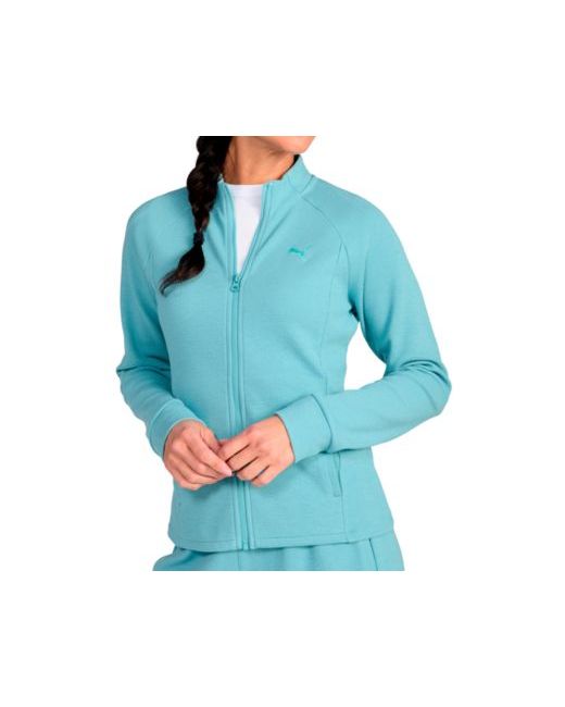 Layer with style in this textured knit full-zip jacket from Puma, featuring on-seam pockets for storage. A slim fit and embroidered chest cat provide a sleek, casual look.