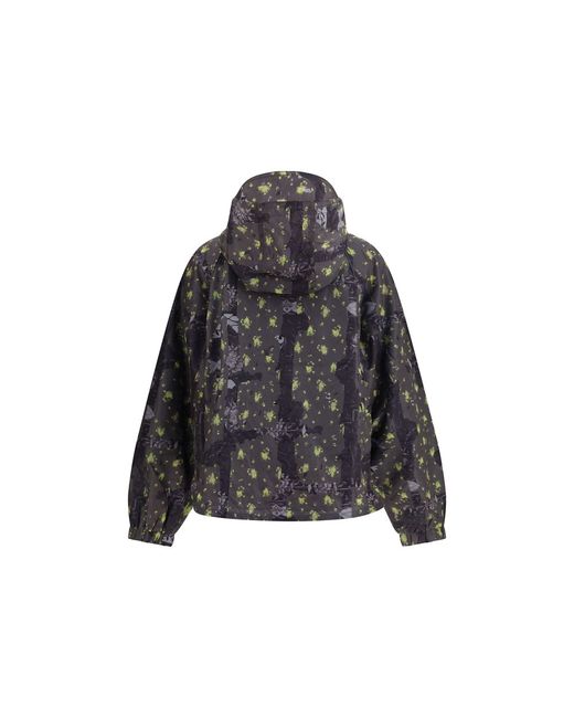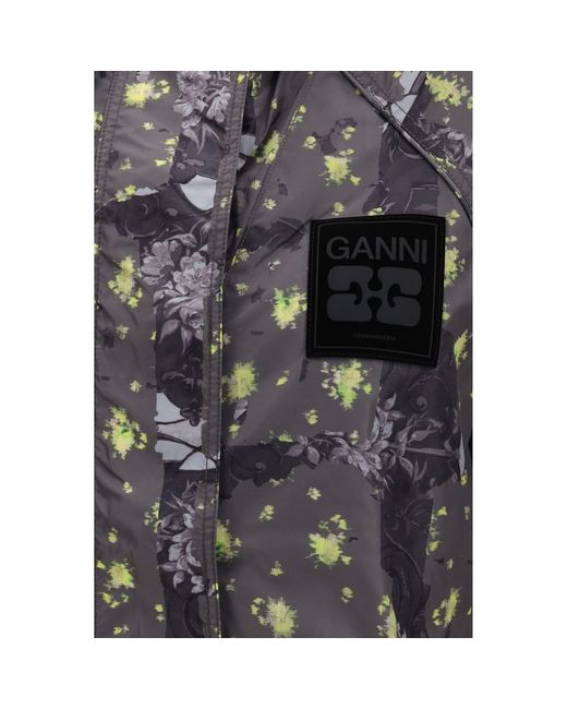 The ultralight nylon Jacket with floral print by Ganni combines functionality and contemporary style in a versatile design. Featuring a hood and front zip closure, it stands out with a high collar that enhances both protection and silhouette. The wide puff sleeves with elastic cuffs add volume and movement, while the elasticated waist defines the shape with a structured, feminine effect. Side pockets and a drawstring hem ensure practicality and an adjustable fit, while the GANNI logo patch on the chest completes the design with an iconic and recognizable detail. Season: SS26 Fit: Regular Composition: 100% Nylon
