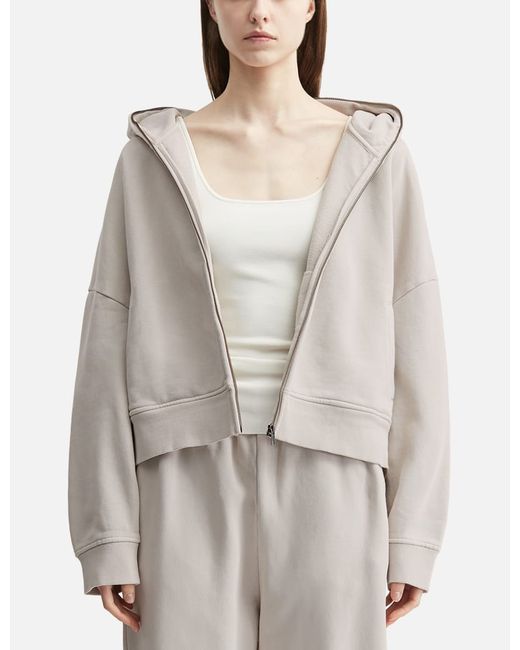 Entire StudioEternal ZipUnisexMade of 510 gsm heavyweight organic cottonGarment dyed and enzyme washedYKK metal front zip closure from the top of the hoodDropped shouldersTwo front pocketsRibbed cuffs and hemBrush back fleece liningSlight variation in exact colour on each pieceColor: Off White