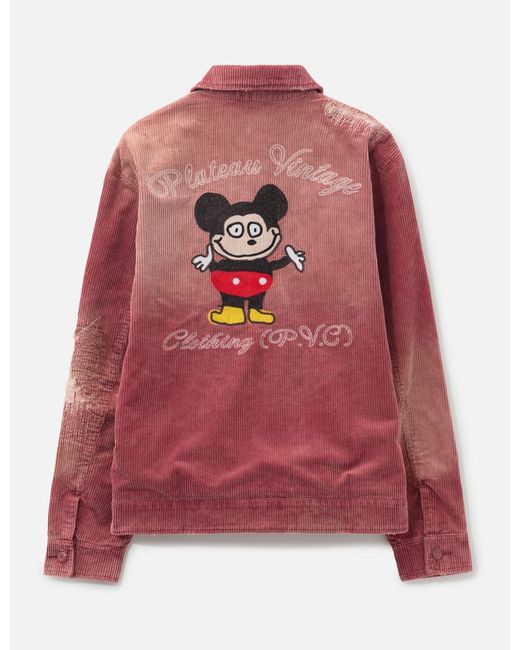 PLATEAU STUDIOPisney Vintage JacketVintage treatmentDistressed and stitching detailsFront metal zipper closureOriginal rusted-like button at cuffsGraphic embroidery on backTwo front pocketsCotton liningColor: Red